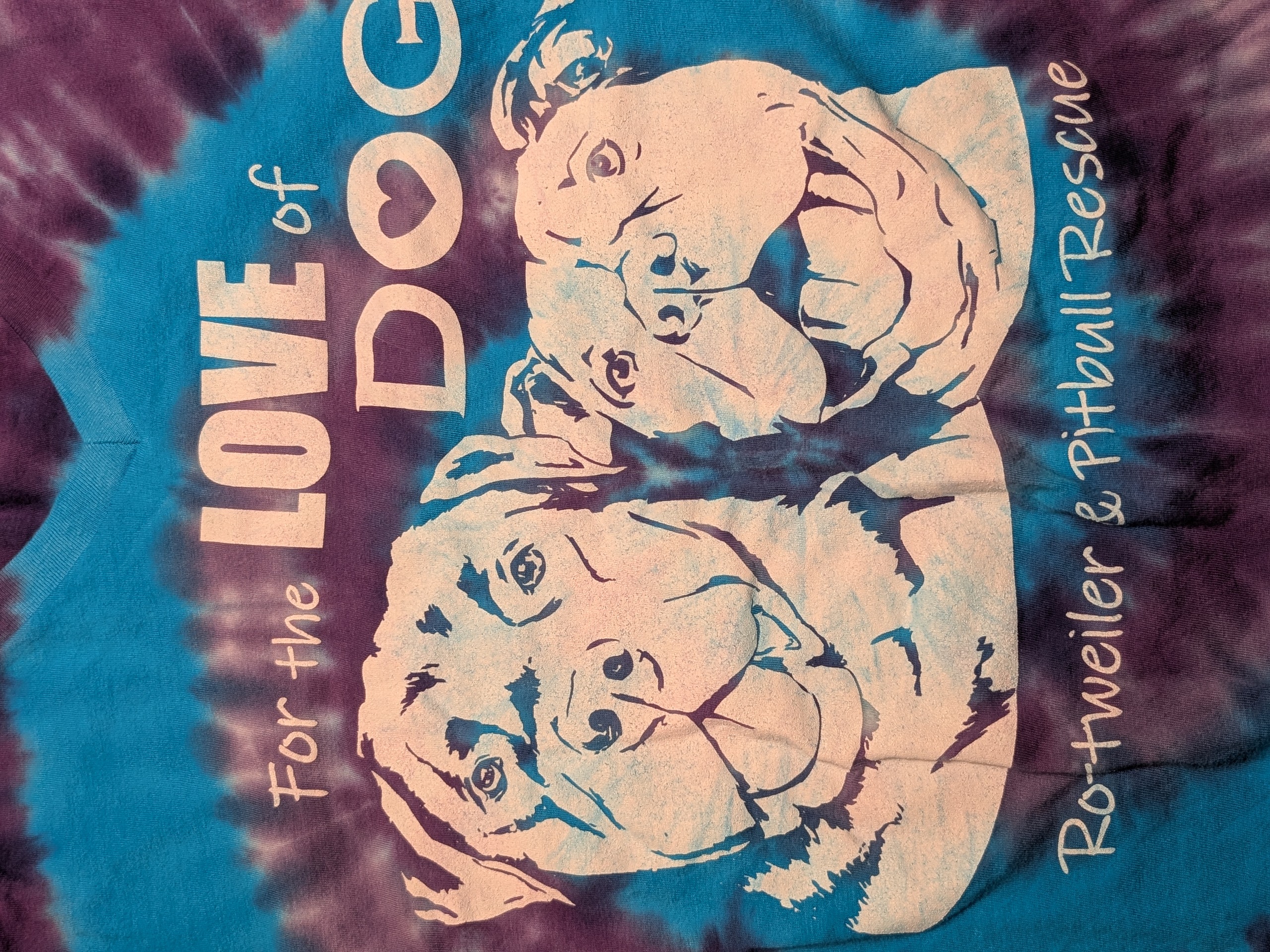 A Dye Girls Original – Hand dyed in New Hampshire, this Purple & Teal colored V neck shirt will WOW your friends. Emblazoned with the Cash-Kahn design is as unique as its wearer!~ Size XL. Short Sleeve $35 shipped